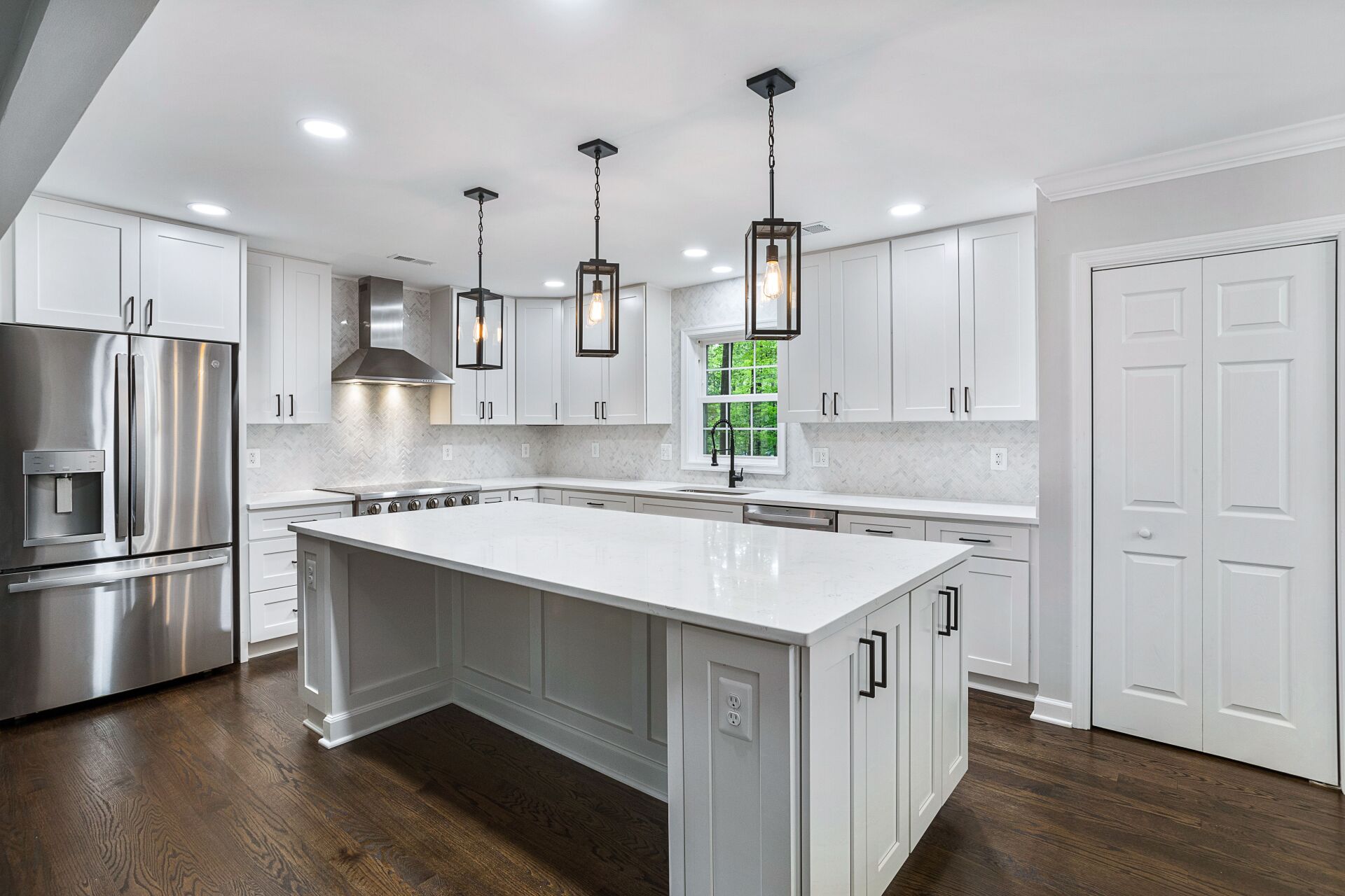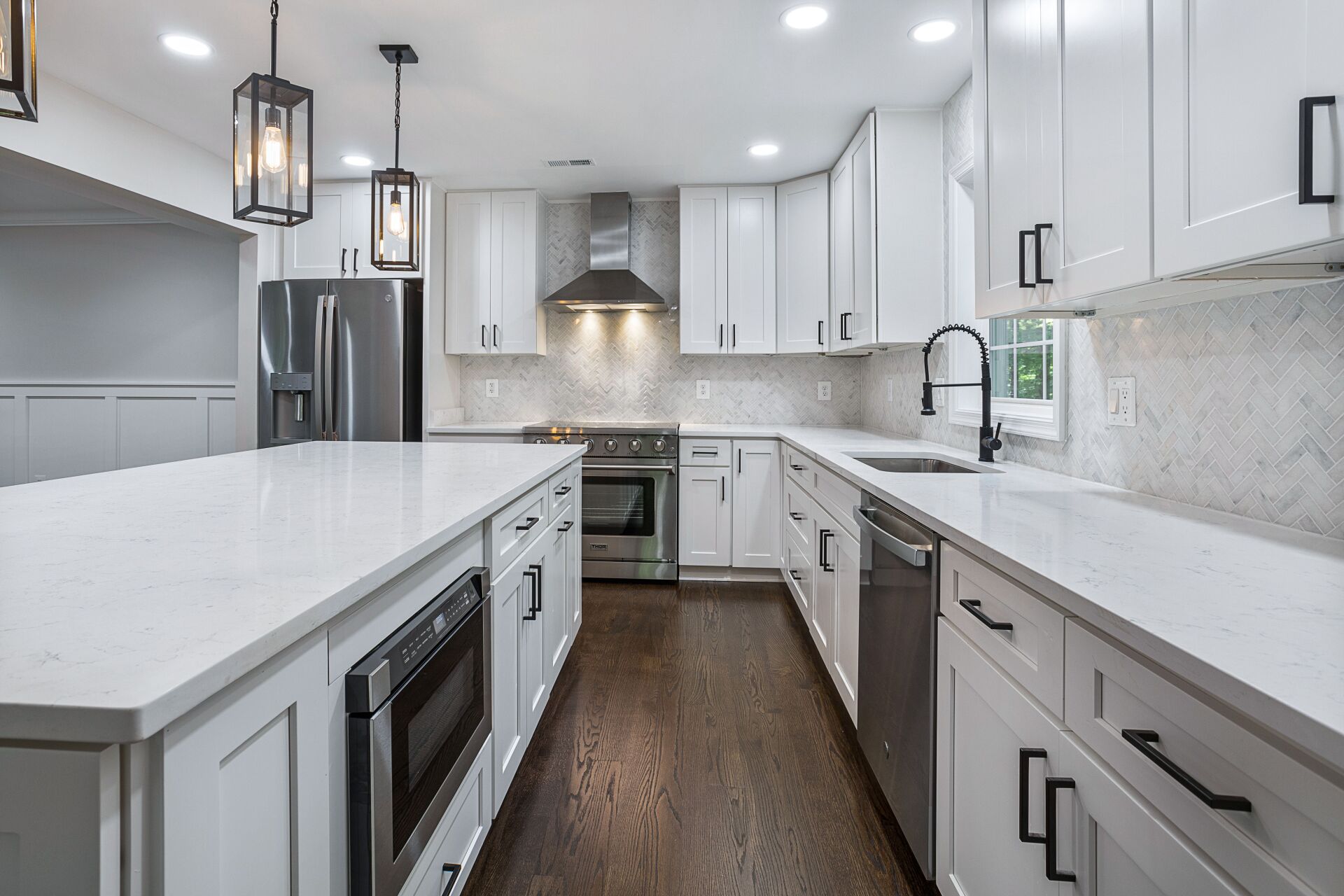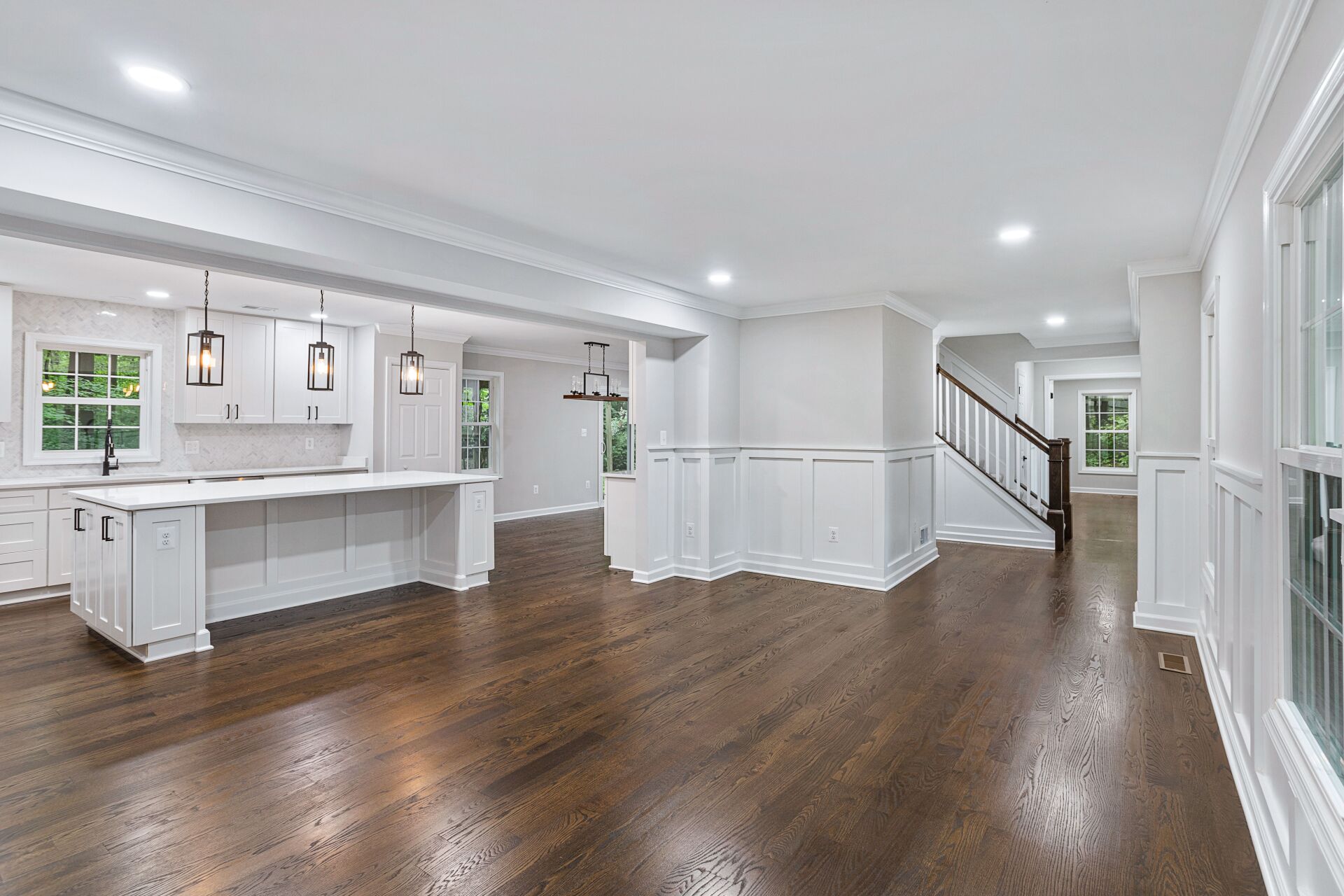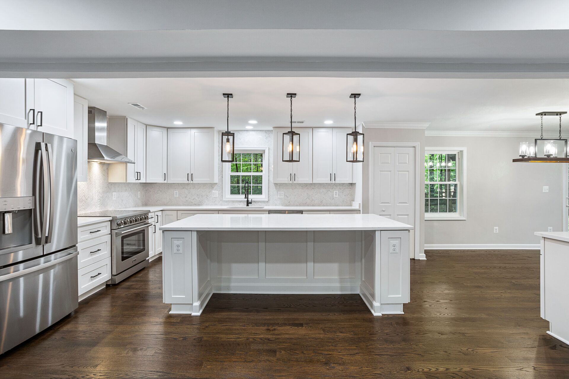 The home features a grand foyer that leads into the spacious living room, complete with hardwood flooring, large windows, and a cozy fireplace. The kitchen is a showstopper, with premium stainless-steel appliances, ample counter and storage space, and a large island that's perfect for meal prep and entertaining.